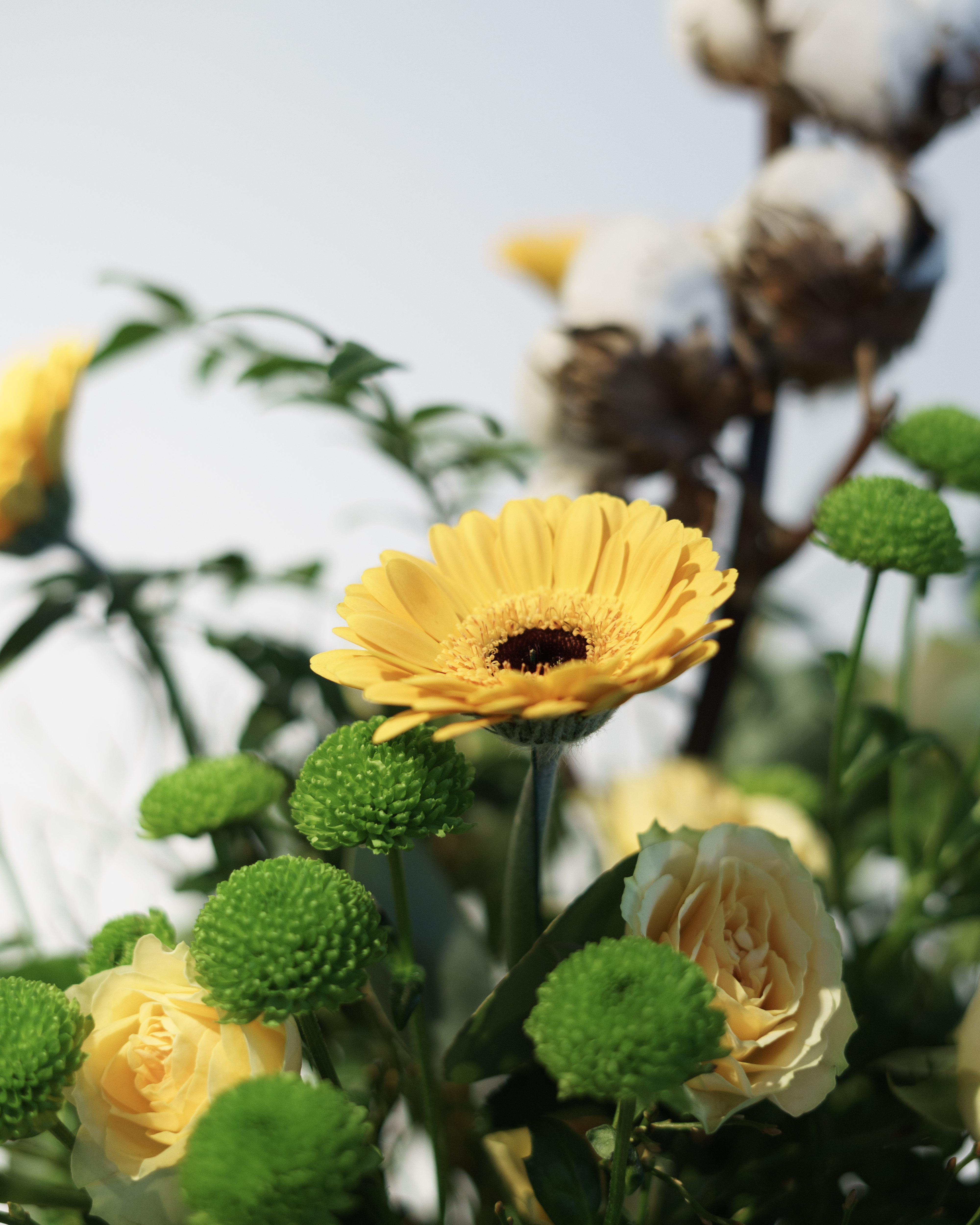 - Strauß mit kleinen Gerbera, verzweigten Rosen und anderen Blüten